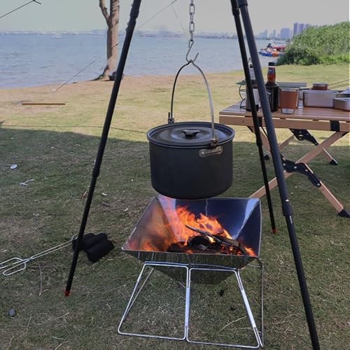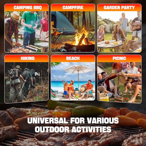 - 2-IN-1 VERSATILE DESIGN – This compact folding camping fire pit portable serves as both a grill and a bonfire stand, perfect for cooking with charcoal or firewood. The adjustable cooking grate allows you to control heat levels for different foods.