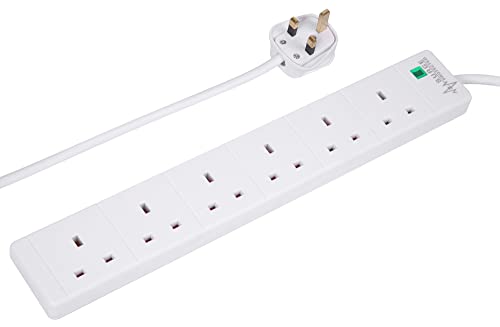 PRO ELEC PELB1703 6 Gang Extension Lead with Surge Protection White, 5m