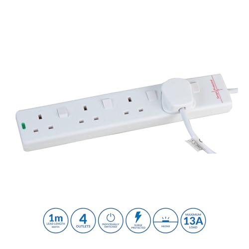 PRO ELEC PELB1918 4 Gang Switched Surge Protected Extension Lead White, 1m