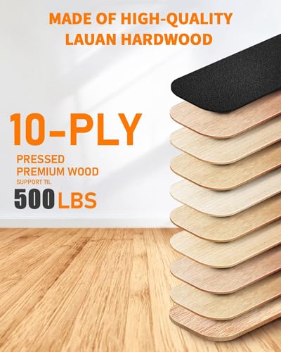 - 💪SOLID STEADY – Made of high-quality Lauan hardwood plywood, stronger and last longer than others made of birch and pine plywood. Which can carry up to 500 pounds. The material is not easy to break or age, and it is durable for five to ten years. The matte non-slip surface can provide a super strong grip during exercise, and will not wear out and become old after long-term use.The black non-slip strip at the bottom can effectively prevent the balance board from moving on the floor
