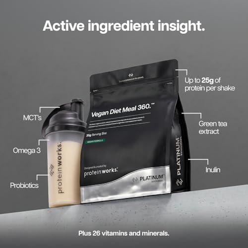 Protein Works | Vegan Diet Meal 360 – PLATINUM Innovation, Vegan Protein Diet Meal Replacement Shake, Healthy Weight Loss, Vitamin & Mineral Blend, Green Tea, Chocolate Silk, 8 Meals, 500g
