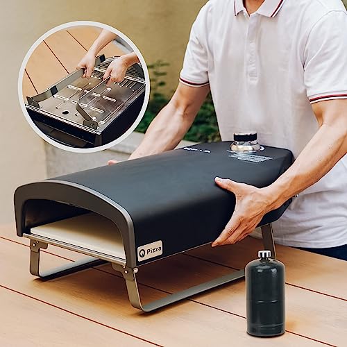 Q Pizza Gas Pizza Oven, Portable 50 mbar Outdoor Pizza Oven with 33 cm Pizza Stone for Garden, Black