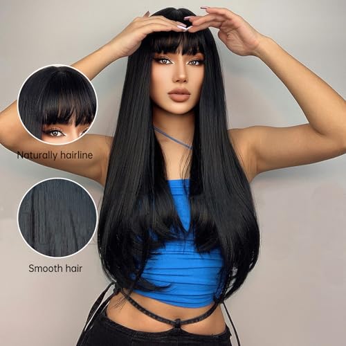 Natural-looking straight black style with fringe
