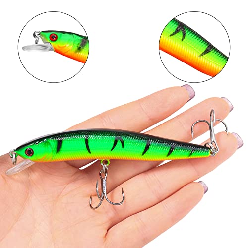 - Fishing Lures: 7 pieces of artificial fish lures. Colorful and realistic appearance and 3D eyes like real fish will attract all kinds of fish when thrown into the water.