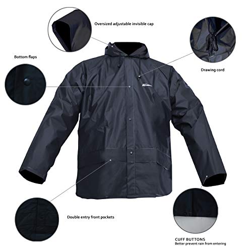 - Material: 100% EVA. It is waterproof, soft, comfortable, anti-oxidant, non-degumming, odorless and so on. Protective Workwear in the rain. All-Sport Rain Suit includes a jacket and pant.To keep you dry. 【 The details can be shown in the size chart. 】