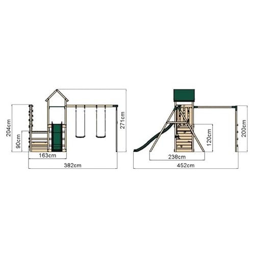 - 🟢 STURDY WOODEN PLATFORM WITH WAVY SLIDE – Impressive 1.2m wooden platform with 8ft Slide that can be turned into a fun wavy waterslide with just a few modifications (hose attachment not included)