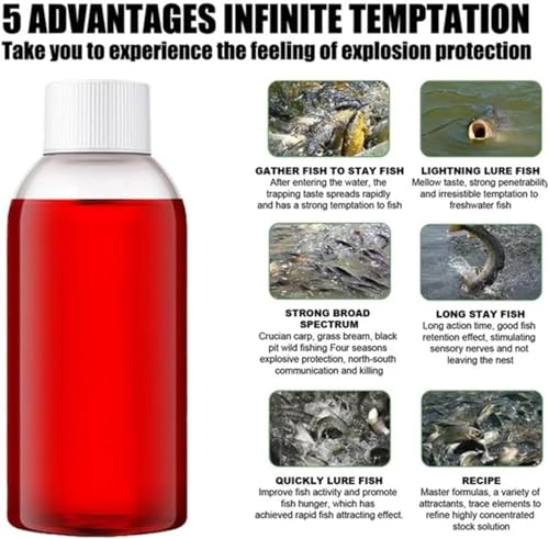- 【Easy to Use】To achieve optimal results, simply pour our Red40 fishing liquid directly into the water or mix them with bait. This easy application ensures convenience and efficiency during fishing trips.