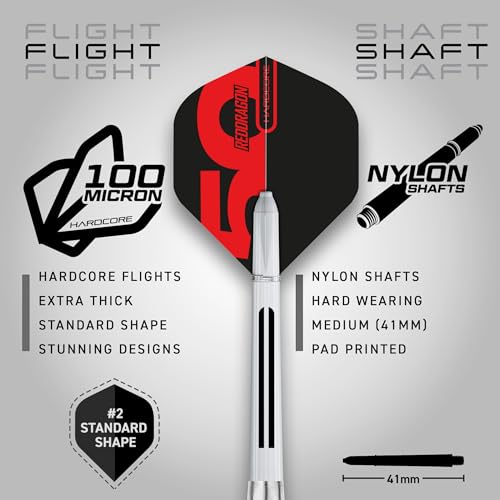 - Improved Aerodynamics & Stability – Includes Hardcore Flights for better in-flight stability and Nylon Dart Shafts for improved control, reducing wobble and maximizing accuracy with every throw.