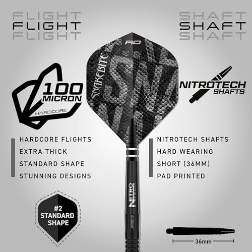 - Complete Professional Darts Set – Includes Peter Wright snakeskin flights and Black Nitro Tech shafts, creating a fully optimized tungsten set of darts for precision, stability, and consistent high-level performance.