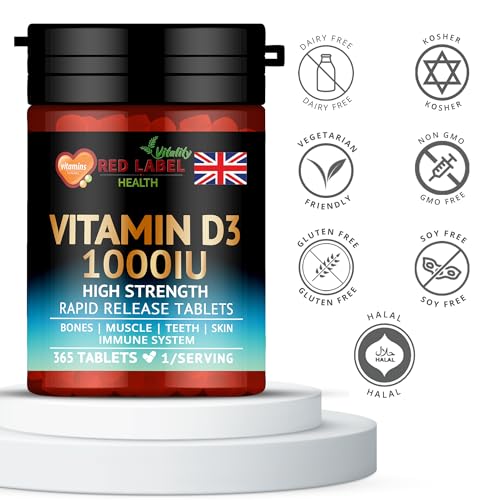 Red Label Health Vitamin D 1000iu, 1 Year Supply, 365 Easy-Swallow Vitamin D Tablets, Vegetarian Vitamin D3 Supplement for Men, Women, High Strength Immune Support Supplement