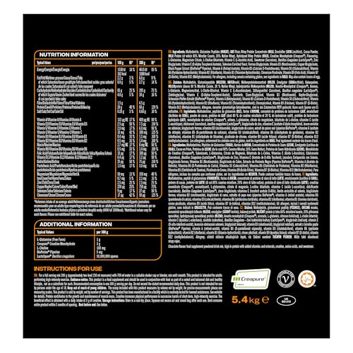 - Excellent Nutrition Profile: Packed with quality ingredients, each protein shake serving delivers over 1000 kcals, 200g of complex carbohydrates, 60g of muscle gain protein, critical EAAs, creatine, 18 vitamins and minerals (B12, B6, C, Iron, Zinc)