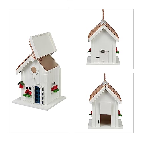 Relaxdays Decorative Bird Villa, Country House Style, Wood, Hanging or Standing, HWD: 23.5x18x18cm, Weatherproof, White