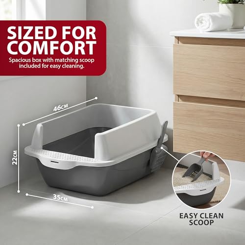 Rex & Roxy Cat Litter Tray | Litter Tray With Scoop | Cat Littering Box | Kitten Littering Trays With Open Top | Large Trays With Detachable Rim | Non Stick Surface | Splash Guards | 35 x 45 x 22cm