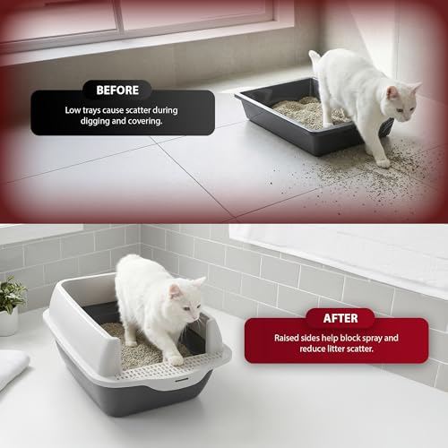 - MESS-FREE WITH SPLASH GUARD – The detachable rim helps contain litter and prevents unnecessary spills, keeping your home clean while giving your cat a secure space.