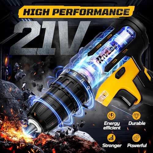 - Highly efficient for diverse drilling needs—The electric drill features a 10mm drill bit + 21+1 torque settings, powered by a pure copper brushed motor with superior conductivity and heat dissipation for stable, long-lasting performance. Effortlessly handles wood, metal, plastic, and more; Features a 10mm chuck for secure, slip-resistant gripping. Its 21+1 torque settings enable precise force control for diverse tasks—suited for home DIY and light woodworking, while also excelling at precision operations like electrical wiring and fastening