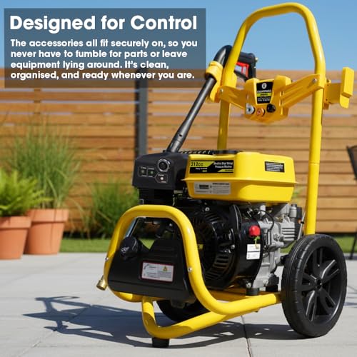 - A Serious Power Upgrade — Built to Outperform – At the core of the 2025 model lies a highly efficient 4-stroke OHV 210cc petrol engine delivering a powerful 7 horsepower. This engine powers a commercial-grade pump that produces a staggering 3190 PSI (220 bar) of maximum pressure, and a sustained continuous rated pressure of 2900 PSI (200 bar). What this means for you is consistent, reliable performance with no drop in pressure when you need it most.