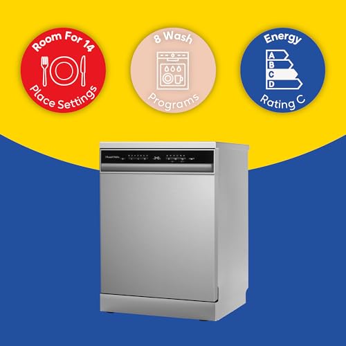 Russell Hobbs Freestanding Dishwasher, Class C, 14 Place Settings, 8 Wash Programs, 24-Hour Delay Start, Auto Door Open, Height Adjustable Basket and Flexible Cutlery Tray, RH60DW10C1SS