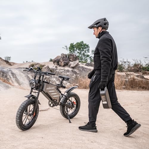 - 【Most Powerful Motor and Largest Battery】RZOGUWEX 20 inch Ebike is equipped with 48V motor, up to 95 Nm of torque effortlessly which can easily complete 45 slope riding. Built-in detachable 25AH battery, in pure electric mode, the battery life is around 85km at the speed of 25km/h, and up to 110 km in pedal assist mode on a fully charged.(The battery life depends on road conditions, slope, weather,etc.). If you like excitement and challenges, you may wish to take this mountain bike to experience an uninterrupted adventure.