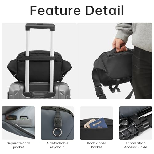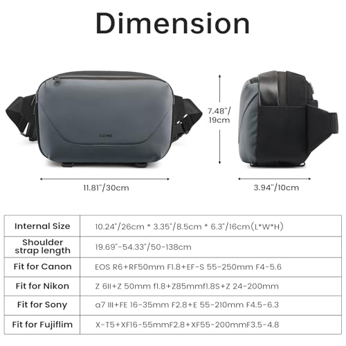 - Multipurpose: With adjustable shoulder straps and hand strap, it can be used as a crossbody bag, sling bag, chest bag, waist bag or handbag, providing the convenience of freeing your hands for your travel, outdoor shooting, camping and weekend getaways