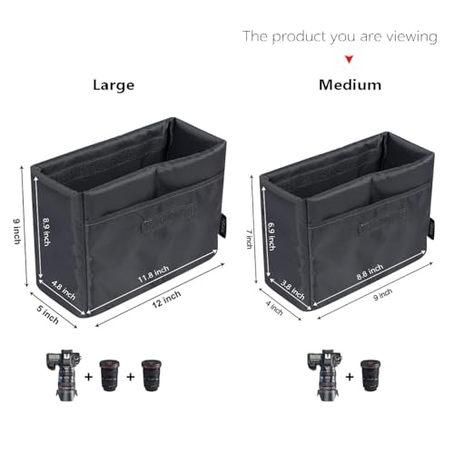 - Dimensions: Medium Size: 9" x 7" x 4"/ 22.86 cm x 17.78 cm x 10.16 cm; Large Size: 12.6 x 8.3 x 5.1 inch / 32 x 21 x 13 cm Foldable, Portable and suitable for a DSLR/SLR camera plus ONE camera lens