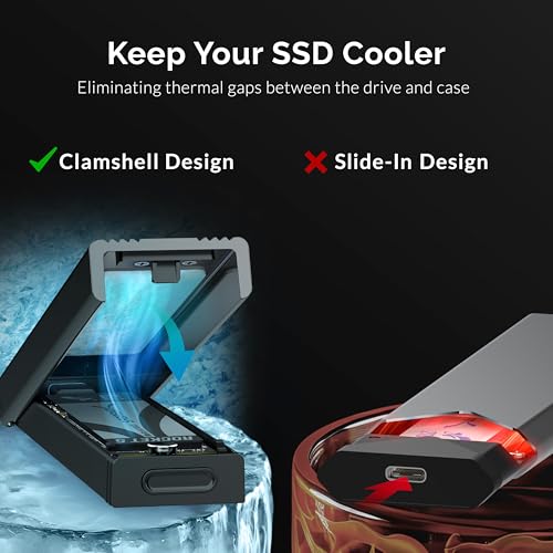 - IMPROVED HEAT DISSIPATION: The m.2 SSD enclosure is made of high-quality aluminum and is compact and slim. The case is specially designed with air vents on both sides to create a cooler operating environment for the best performance and longer lifespan of SSDs. With this, the m.2 SSD can guarantee a secure connection during data transmission, protection from voltage, overcurrent, overheating, short circuits, leakage, and other multiple protections