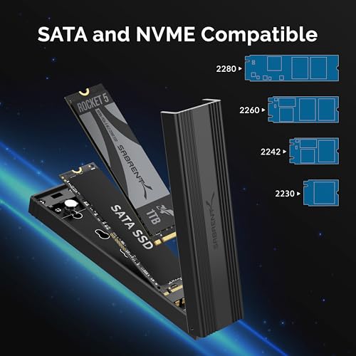 SABRENT M.2 NVMe Enclosure, Tool Free NVMe and SATA, 10Gbps External SSD Enclosure, Reusable Thermal Pad, Compatible with 2230 2242 2260 2280 (EC-SNVE)