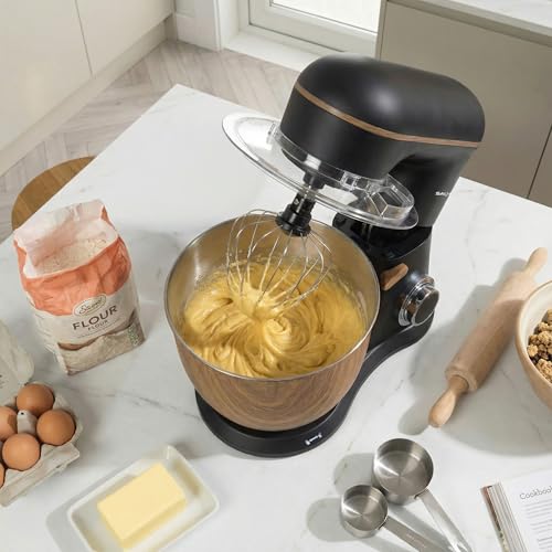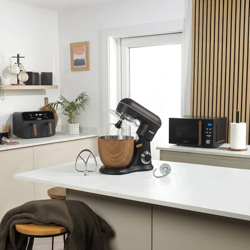 Salter Toronto Stand Mixer – 5L 1300W Electric Food Mixer with Stainless Steel Bowl, 10 Speeds & Pulse, Tilt-Head Design, Planetary Mixing, Accessories Included, Matte Black with Wooden Accents
