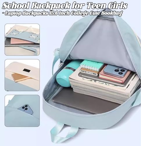 Sanilinwild Kawaii Backpack,Cute School Bag Large Capacity, Waterproof Backpack Rucksack Books Bag Casual Daypack, Elementary School Bags Bookbags (Blue)