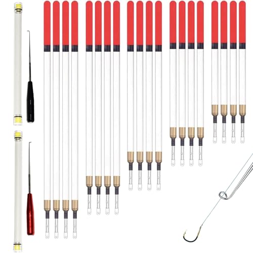 Satiskid Ultimate Fishing Combo: 20Pcs Waggler Fishing Floats Set + 2Pcs Stainless Steel Hook Removers – Complete Coarse Fishing Tackle for Stillwater & Running Water