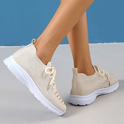 Saved for Later Items Women Trainers Wide Fit Wedge Walking Sneakers Casual Fashion Non Slip Jogging Shoes Lightweight Low Top Soft Sole Slip on on Trainers Women Beige 6.5