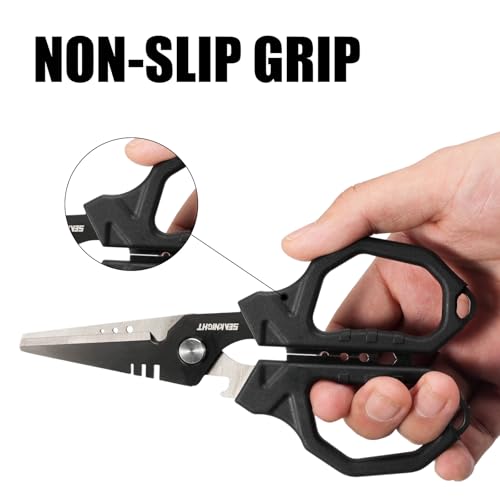 Seaknight 6.4" Fishing Shears Dual Serrated Blades, Fishing Braided Line Scissors With Titanium Coating, Non-Slip Grip & Multifunction Tool, Includes Hard Molded Locking Sheath (Black 6.4")