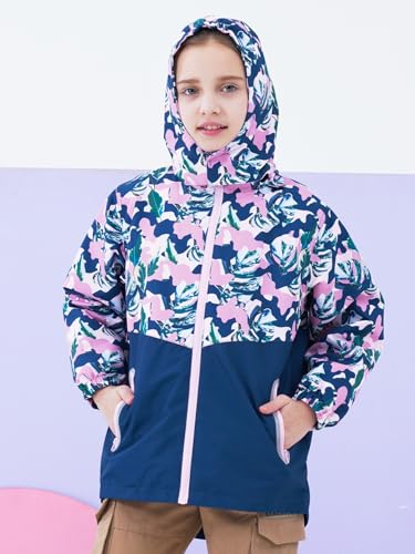 SERENYOU Girls Waterproof Jacket Kids Fleece Lined Raincoat Girl Windbreaker Girls' Rain Coat with Removable Hood Style 1 UK:9-10 Years (manufacturers's size: 140)