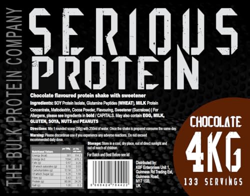 SERIOUS PROTEIN – Protein Powder – 4kg – Low Carb – Supports Lean Muscle Growth – Recovery Supplement – The Bulk Protein Company – 133 Servings (Chocolate)