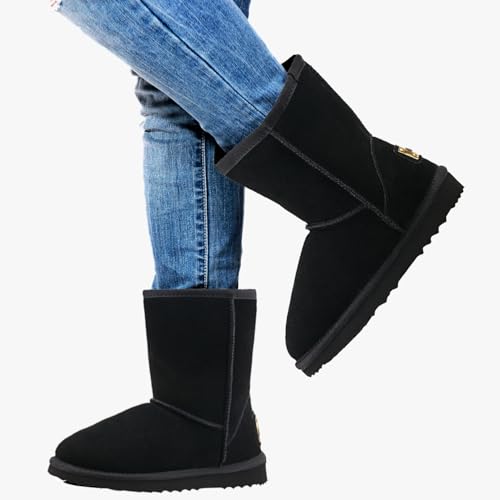 Shenduo Men's Water Resistant Leather Boots Classic Short Snow Boots 9UK D5625 Black 43EU