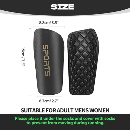 - Maximum Coverage: Measuring 19 cm (L) x 8.8 cm (Upper Width) x 6.7 cm (Lower Width) / 7.5" (L) x 3.5" (Upper) x 2.7" (Lower), these shin guards provide a secure fit for men women adult players; the sturdy yet lightweight build ensures reliable protection