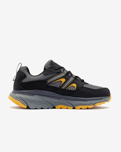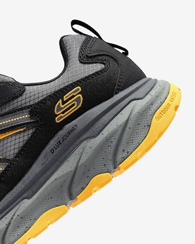Skechers Men's D'Lux Journey Sneaker, Black Leather/Textile/Yellow Trim, 10 UK