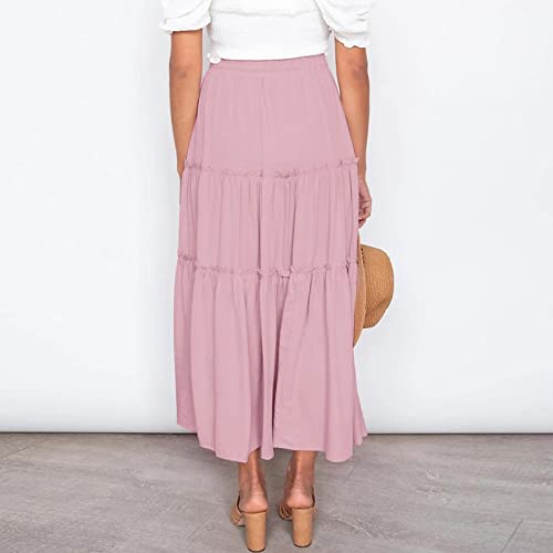 Skirts for Women UKElegant Drawstring High Waist Tiered Ruffle Maxi Skirt with Pockets Ladies Summer Elasticated A Line Swing Midi Length Beach Holiday Vacation Dress