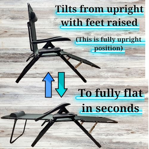 Smith & Barker 2 in1 Deluxe Folding Reclining Sun Lounger Sunbed Sun Bed Recliner For Garden Sunlounger Grey Camping Chair