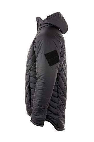 Snugpak SJ12 Fitted Insulated Jacket WGTE with Insulated Hood – Tactical Jacket with Robust Paratex Fabrics, Softie Premier Insulation, Hook & Loop Sleeve Patches – UK Made – Black (L)