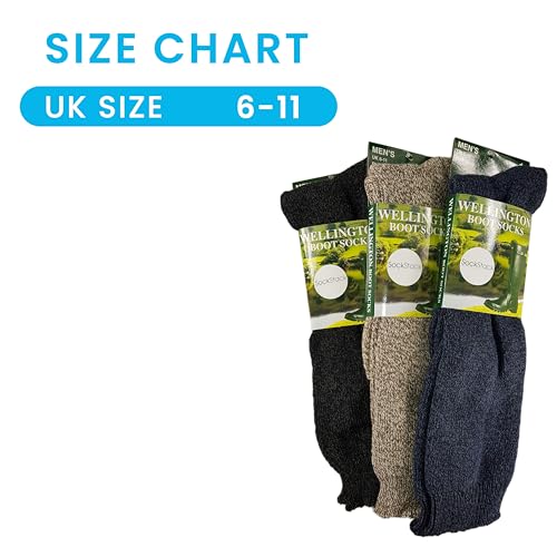 Sock Stack 3 Pairs Men's Wellington Boot Socks Thick Thermal Wellie Sock Warm Durable & Comfort fit Outdoor UK Size 6-11