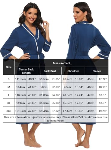 Sopesil Women's Thin Dressing Gown Long Robes Lightweight Nightwear Robes Luxury Soft V-Neck Kimono Sleepwear Loungewear A-Dark Blue,L