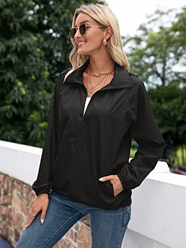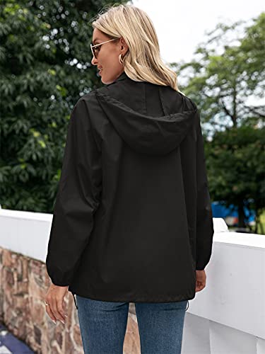 MODFUL Women's Lightweight Windbreaker Jacket Hooded Packable Coat with Pocket for Spring Summer Autumn (Black, Small)