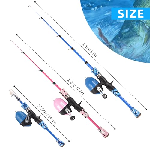 Sougayilang Kids Fishing Pole with Spinning Reels,Telescopic Fishing Rod for Travel Freshwater Bass Trout Fishingļ¼Blueļ¼