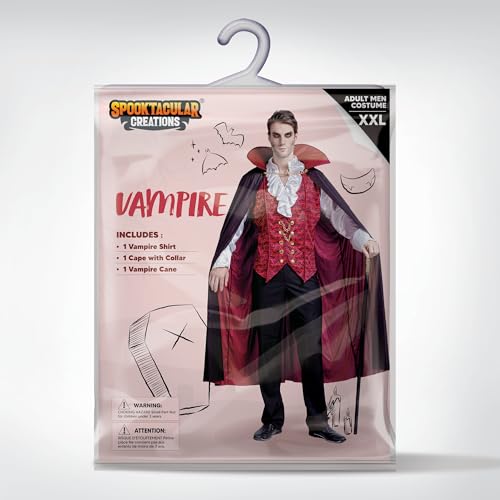 The Spooktacular Creations Renaissance Vampire Costume is designed for men who want to rule the night in true Dracula style. With its rich red details, stand-up collar, and dramatic cape, this deluxe outfit brings gothic elegance and theatrical presence to Halloween, stag nights, or themed events.