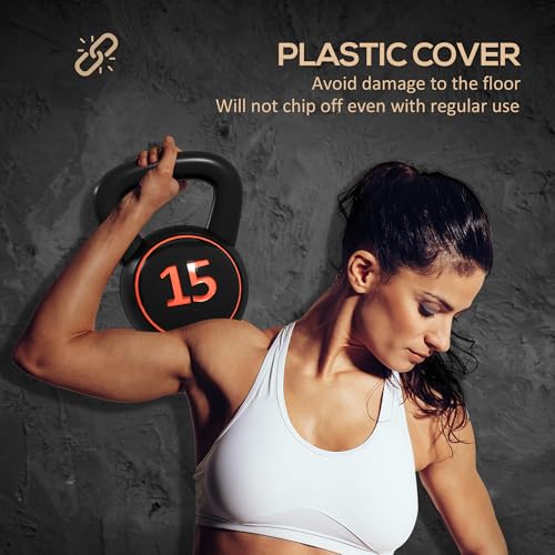 SPORTNOW Set 3 Kettlebell Set Weights with Storage Stand for Home Gym Weight Lifting Training, 5lbs, 10lbs, 15lbs (2.2kg, 4.5kg, 6.8kg)