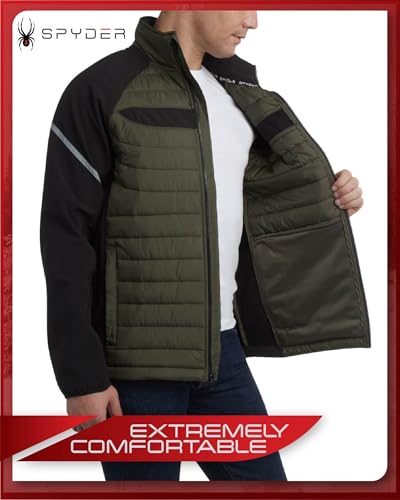 Spyder Men's Active 2fer Jacket – Midweight Insulated Quilted Puffer Bubble Windbreaker with Softshell Sleeves (Sizes: S-XL), Olive, M