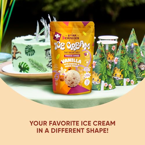- CRAZY CRUNCH & CREAMY FLAVOR: Savor the mind-blowing fusion of crispy texture and velvety vanilla with caramel and cookies in every bite. This freeze dried astronaut ice cream delivers an otherworldly taste that'll make your taste buds dance with joy!