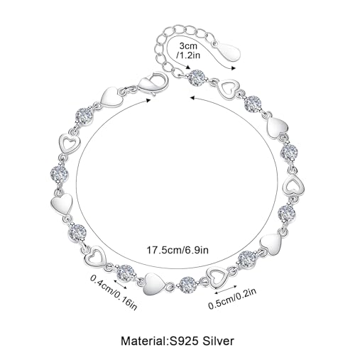 - š ć925 Sterling Silver Love Heart BraceletćOur womens silver bracelet is made of 925 sterling silver, plated with platinum and sparkling white cubic zirconia. This heart bracelets for women is not easily oxidized, deformed, faded, hypoallergenic, nickel free, lead-free, hypoallergenic, and will not cause any irritation to your skin. The surface of the ladies bracelets is smooth and polished, which can be worn for a long time and remains shiny as new.