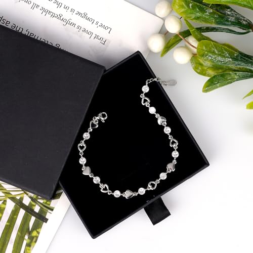- šćUnique Heart Bracelet Design IdeaćOur heart bracelets for women features an exquisite heart-shaped symbol design, exuding elegance and charm. Around the heart bracelet is adorned with small cubic zircon, making it sparkle and sparkle.Heart shape represents endless love for each other in life. When she wears this heart sterling silver bracelet, she will remember your strength or sweet memories.