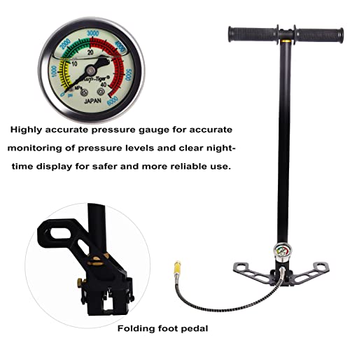 - 【Sturdy & Durable】 The 3-stage stirrup pumps are equipped with a stainless steel pump tube, soft rubber grip handle grips and a folding foot pedal. They make the PCP hand air pump more stable, longer lasting and easier to transport.